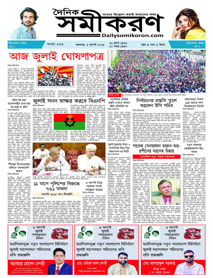 মঙ্গলবার, ০৫ আগষ্ট ২০২৫